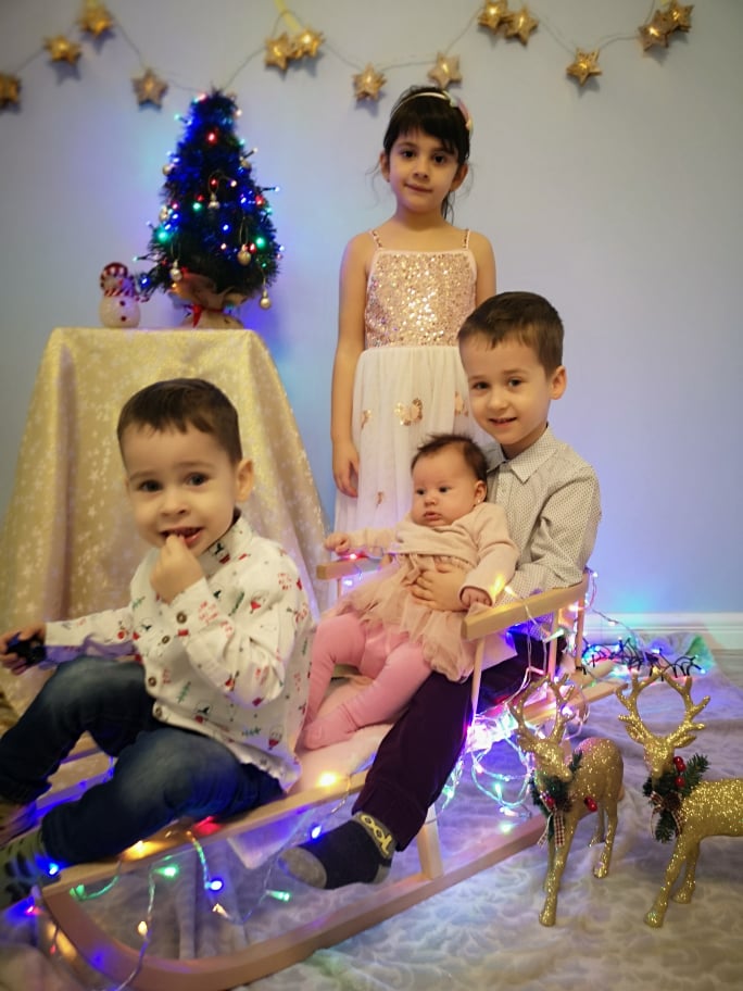 Kik vagytok? Nagycsaládosok vagyunk. 5 év lombikozás után fogadtuk örökbe a lányunkat 2014 áprilisában, nyílt, magánutas örökbefogadás útján. A szülő anyáról képünk is van, és a többi testvéréről is. Már a terhesség során megismertük, így mi adtunk nevet a lányunknak. A Kaáli Intézetből eltanácsoltak, hogy reménytelen eset vagyok. 3 inszemináció, 6 lombik, 1 spontán vetélés után azt mondta a lombikos orvosom, hogy nem tud többet tenni értünk. Aztán 2016-ban váratlanul állapotos lettem és megszületett a fiam. 2017 karácsonyán, miközben fürdettem a két gyereket, a lányom a következő kérdést tette fel: anya, mikor fog már kiszületni a hasadból a másik kisöcsém? Nos, terhesteszt elővesz, és ott virít a 2 csík. Kisebb sokkot kaptunk.  Így történt, hogy 2018 augusztus 22-én megszületett a második fiam. A  terhesség ikerterhességnek indult, de  7. héten már csak egy baba volt, és egy hatalmas hematóma (valószínűleg emiatt ment el a másik magzat), a 12. hétig veszélyeztetett terhes voltam. Majd idén egy januári napon, miután benyomtam egy óriás üveg fekete olivát (amit amúgy nem is szeretek), bevillant, hogy babát várok. Szinte rá sem pisiltem a tesztre, már pozitív lett. Februárban jött a covidos mizéria, az SZTK-ban már kicsit káosz volt. 2 hét múlvára kaptam időpontot. Ott, akkor nem láttak terhességet, elrendeltek egy komplett hormonsort, köztük HCG-t, de a labor azt valamiért nem csinálta meg. Totális káosz, a saját nőgyógyász szabin.